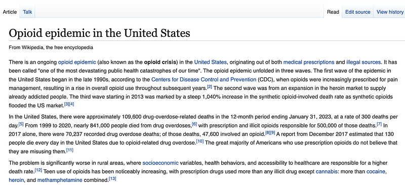 A Crisis in the Making: Wikipedia Documents the Opioid Epidemic (2001-2023)